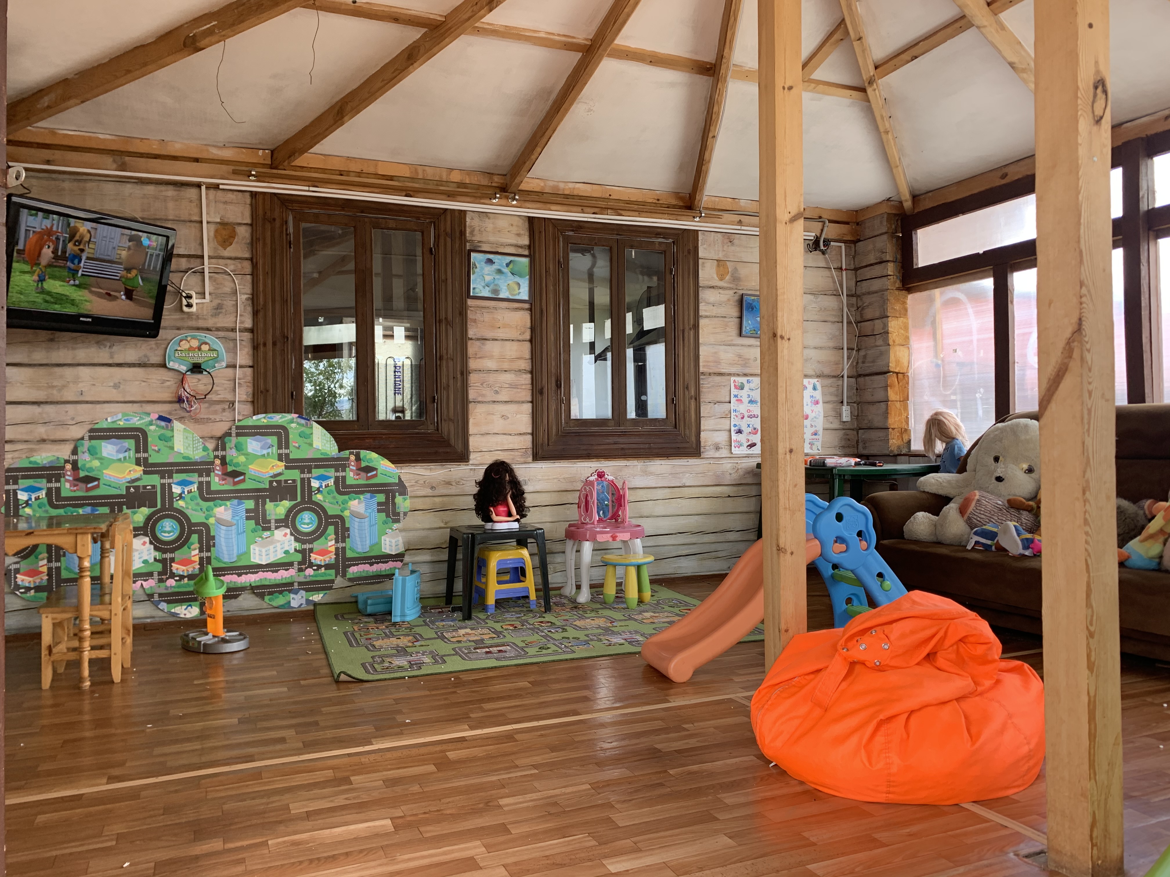 благоустроенные корпуса, досуговый центр, волейбольное и футбольное поле,